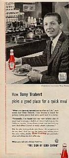 Né à Cincinatti en 1930, Tony Trabert apprend le tennis sur les courts en ciment avant de devenir l'élève de Bill Talbert, un excellent technicien, spécialiste et théoricien du double messieurs. Talbert, membre de l'équipe américaine de coupe Davis remporta plusieurs titres en grand chelem avec son partenaire Gar Mulloy dans les années 40. Talbert emmena son élève en Europe en 1950, l'année de ses 20 ans. Pour se première apparition à Roland-Garros, il se fit remarquer par sa gentillesse, sa sportivité, et son acharnement à l'entraînement, même quand il avait joué trois parties dans la journée! Les deux américains remportèrent surtout l'épreuve de double en battant en finale une paire aussi expérimentée que Drobny-Sturgess.