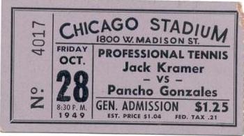 1949 : Billet d'un des premiers match pro de Pancho Gonsales