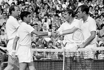 Gimeno, Gonzales, Butchholz, Rosewall, Ralston, Stolle, et Laver