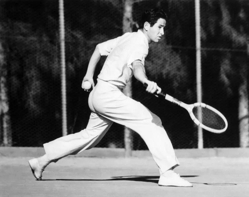 Avec Jack Kramer et Pancho Ségura. A noter la présence de deux représentantes du tennis féminin : Gussie Morgan et Pauline Betz.