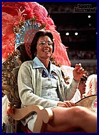 Billie Jean Moffit, épouse King, 29 ans, est au sommet de sa carrière. Dans sa position de militante féministe, elle n'hésite pas à relever le défi. Le match des sexes s'organise donc avec le support des médias et tout se transforme alors en un énorme show à l'américaine avec une pluie de dollars à la clé. Riggs se prétendait alors militant d'un mouvement de libération de l'homme, affichant ouvertement son mépris pour la cause féministe. Rosie Casal, partenaire de double de King répondait en traitant Riggs de vieillard qui marche comme un canard, sans voir, sans entendre, et en plus il est idiot!
