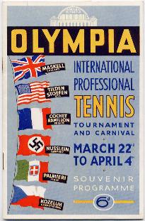 Sur l'affiche de 1939 à l'olympia de Londres sont annoncés l'anglais Maskell, les américains Tilden et Stoefen, les français Cochet et Rampillon, l'italien Palmeri, l'allemand Nuesselen, et le tchèque Kozeluh.