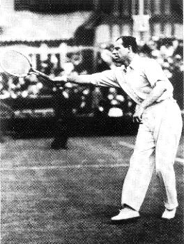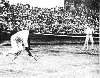 Wilding de dos, contre l'américain McMoughlin en 1913, première finale de Wimbledon sans un anglais. Wilding gagne 8/6 6/3 10/8 |