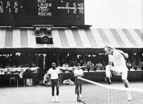 Mais revenons au tennis. Après deux matchs difficiles contre Emerson et Stolle, Laver retrouve en demi-finale Tony Roche. Cela ne s’annonçait pas facile pour Laver qui avait perdu la semaine précédente en finale contre Roche les championnats de Nouvelle Galles du Sud. Joué sous une chaleur accablante de plus de 35° à l’ombre, le match connut d’invraisemblables rebondissements. A l’issue d’un deuxième set marathon de plus d’une heure, Laver menait deux sets à rien 7-5 et 22-20 ! Fatigué, il concédait le troisième de justesse 11/9. Après le repos, Roche déchaîné mena rapidement 5/0 puis 6/1. A 5/0, Laver s’était battu pour gagner son service et pouvoir servir le premier dans la dernière manche. Sage précaution puisque chacun gagnant son service dans la dernière manche, Roche servit à 3/4 pour égaliser. A 15/15 tout était encore possible quand Roche regarda filer le retour en revers croisé de Laver qu’il voyait largement dehors. Ce ne fut pas l’avis de l’arbitre qui maintint sa décision. Énervé, Roche tenta de discuter, mais ne put retrouver son calme pour le point suivant: il mit sa volée dans le filet. A 15/40, la pression était sur lui, et c’est Laver qui tenta sa chance par un passing de revers que Roche ne put que toucher…. C’était fini et le dernier jeu ne fut plus qu'une formalité. Laver avait son billet pour sa première grande finale de l’année. Il faut toujours un peu de chance ici ou là pour réussir un grand chelem…