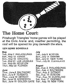 | 1974 : calendrier des rencontres à domicile des Pittsburg triangles |