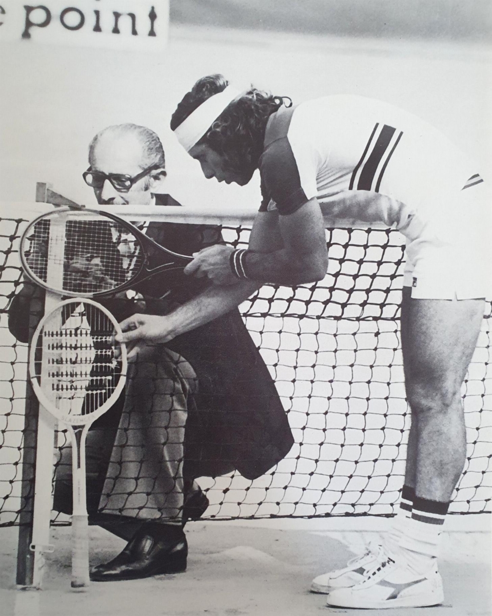 | 1977 : Le président Philippe Chatrier essaye la fameuse raquette |