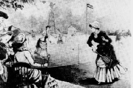 Il faut dire tout de même que les premières championnes ne sont pas gâtées par la tenue vestimentaire imposée par les règles de bienséance de l’époque. Châpeau, manches longues, corset, jupe aux chevilles et jupons sont en effet obligatoires. Saluons le courage et l’enthousiasme de ces dames qui courraient comme elles pouvaient, quelques fois en soulevant leur robe d’une main tout en frappant avec la raquette de l’autre…